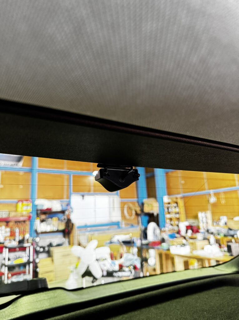 今回はバンド固定式のデジタルミラー型を取り付けました。既存のルームミラーにバンドで固定するタイプのため、ミラー交換なしで取り付けられます。